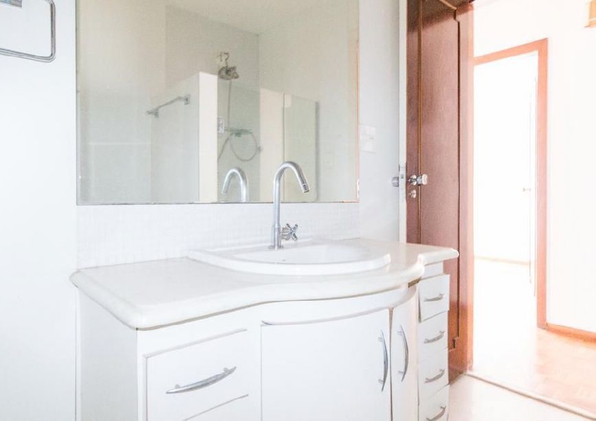 A sala ampla recebe iluminação natural generosa, criando um ambiente acolhedor e perfeito para receber familiares e amigos. São quatro quartos, incluindo uma suíte, garantindo privacidade e conforto. Além disso, o apartamento conta com dependência de empregada completa, com quarto e banheiro, oferecendo funcionalidade extra para o dia a dia.