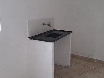 Barracão simples para locação, composto por 2 quartos, sala, banheiro, cozinha e área externa. Todo em piso cerêmico e teto em laje. Imóvel sem armários, com espaço que comporta moto.