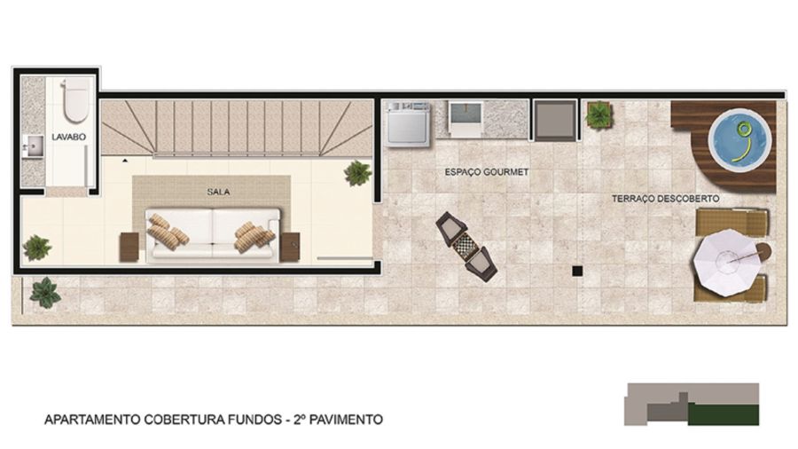 A cobertura possui excelente aproveitamento de espaço, com 02 salas amplas, 01 quarto bem distribuído, 02 banheiros, além de lavabo, área de serviço e um terraço ideal para momentos de lazer ou até mesmo para receber convidados com mais privacidade. Conta ainda com 02 vagas de garagem e área total de 75 m², sendo uma opção diferenciada para quem busca mais espaço e exclusividade.