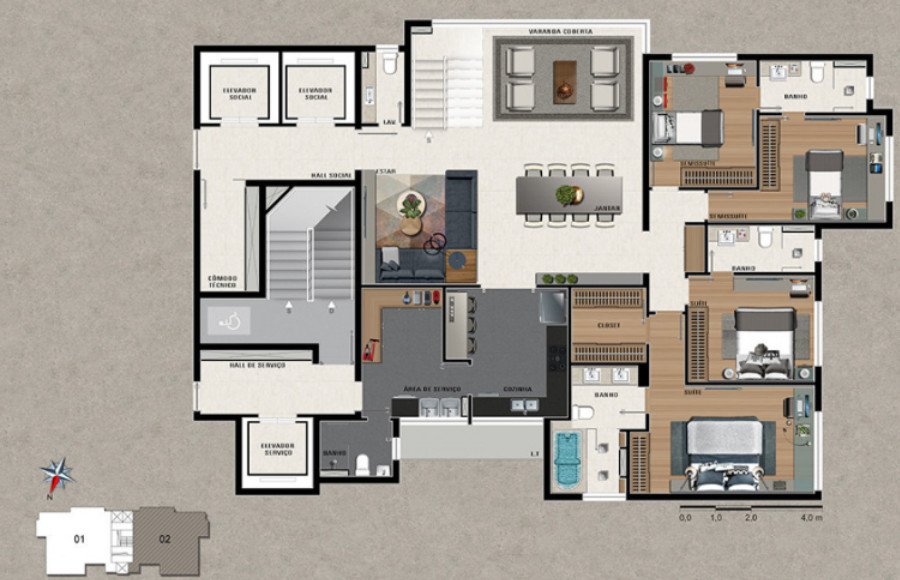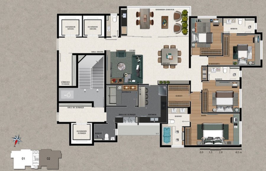 Os apartamentos de alto luxo do La Bresse oferecem toda a privacidade, lazer e sofitiscação que você procura. São unidades com 174 m², com varanda, sala para 2 ambientes, além de uma estrutura de lazer completa para poder relaxar e descansar traz espaços especialmente desenhados para você curtir o melhor da vida e, claro, descansar no La Bresse!